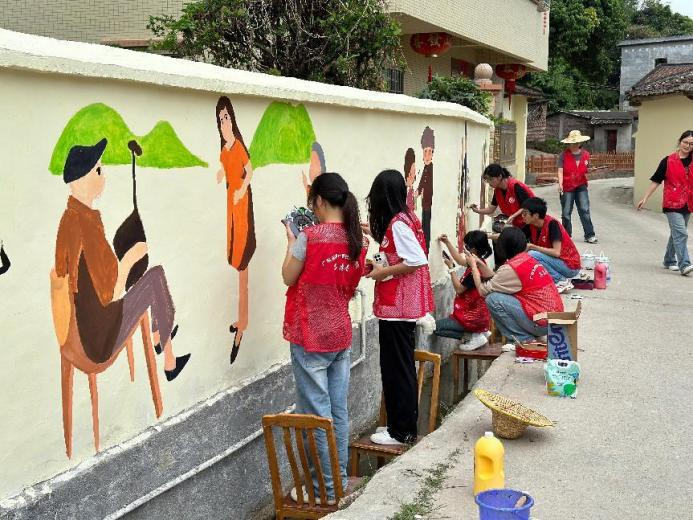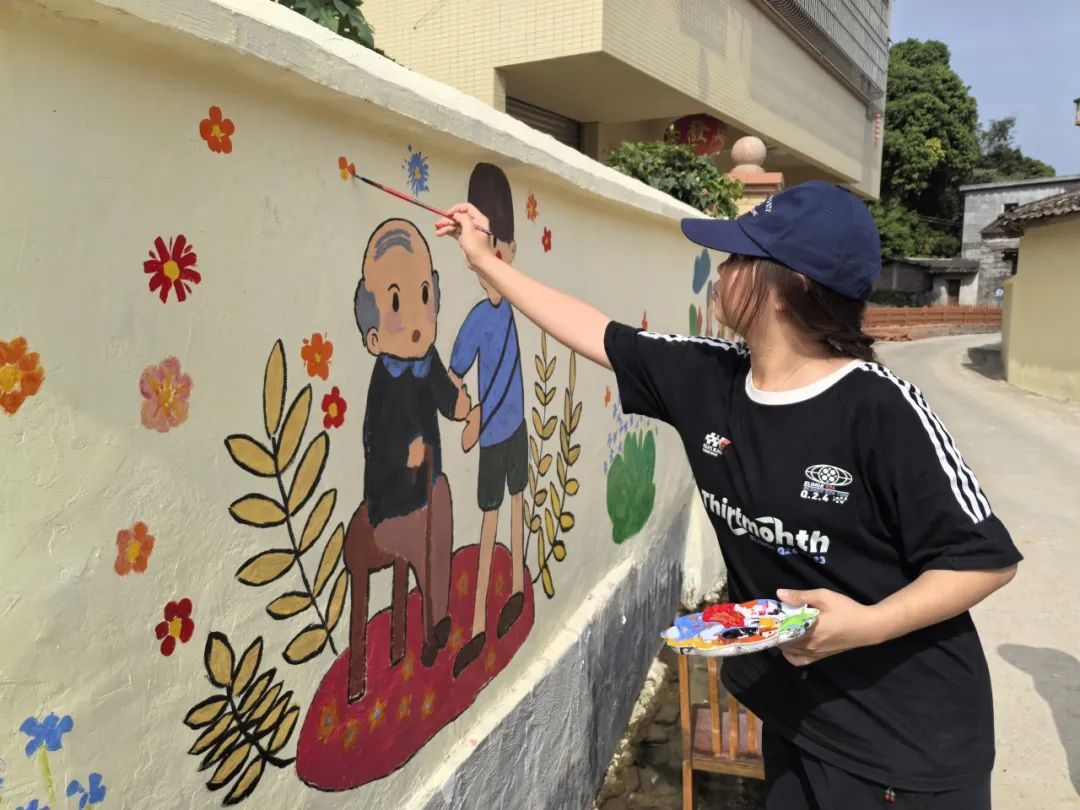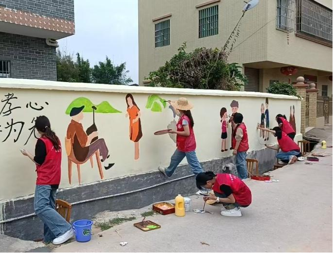 11月4日,我校“田园彩绘梦想突击队”召集十余名师生再次来到云浮市新兴县车岗镇的云洞村,绘制了一系列敬老孝老的美丽画卷,不仅为墙面添彩,更是弘扬了中华传统美德。