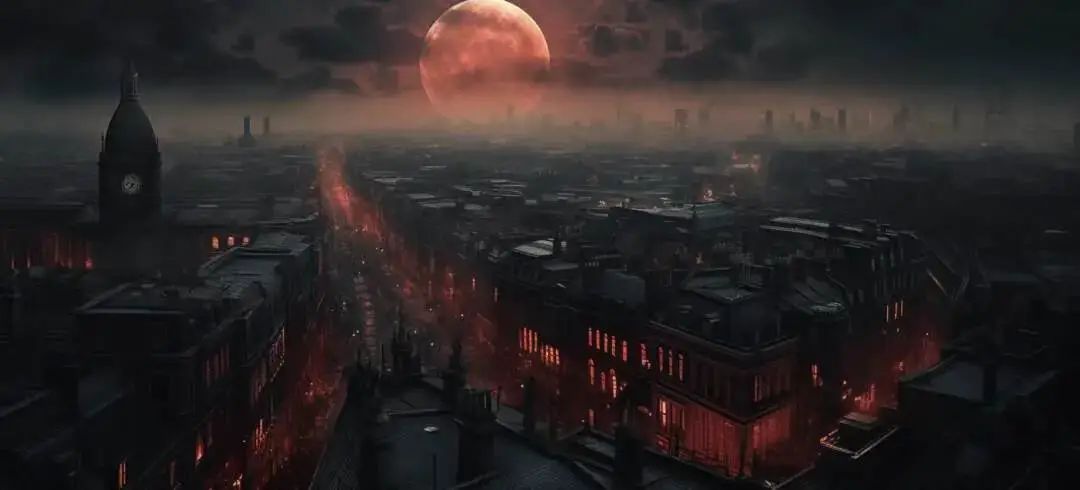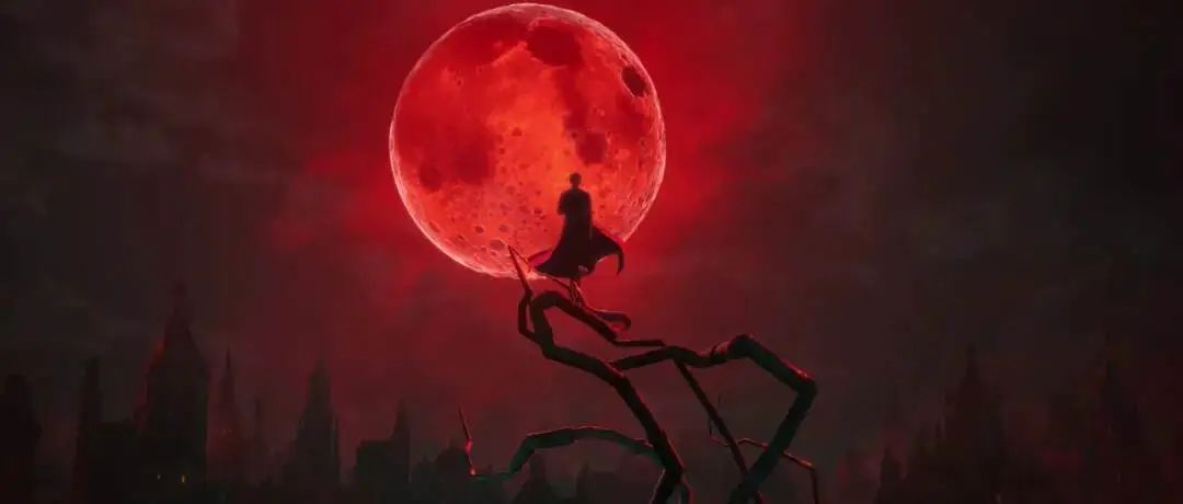 《诡秘之主》在制作上采用了电影级动态分镜和实体场景扫描技术,凭借每分钟近千张画稿的手绘风格还原了诸多细节,在一定程度上实现了原著机械感加克苏鲁的诡异美学。比如廷根市的阴郁街景,哥特建筑、潮湿的石板路、永远灰蒙蒙的天空,再加上那一轮高悬的血月,看上去神秘且压抑,就算是没看过原著的观众,脑海中也会立马蹦出一个念头——这个世界不简单!